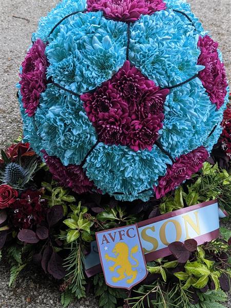 Made entirely from fresh flowers, it can be designed in any team colours or shades of your choice. The football sits on a base with a rose spray, and you can add an optional ribbon sash with a name or even your team’s emblem upon request.
