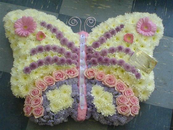 Butterfly tribute, many colour combinations can be used just give us a call and we can discuss what is available and suitable to use. We can add more roses if required and price would vary accordingly, please give us a call 0121 366 7226