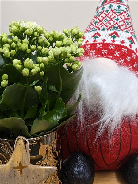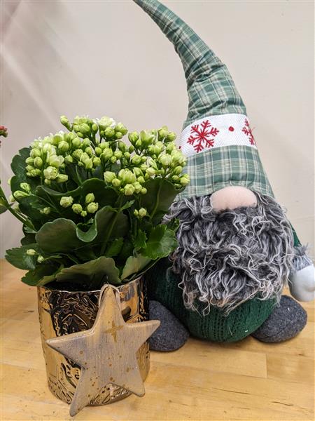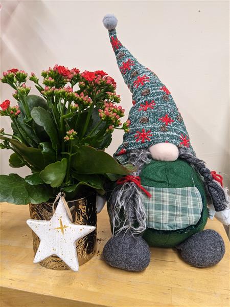 Various Christmas Gonks/Gnomes with an accompanying Kalanchoe plant in ceramic pot. Plant is available in red and white, our florist will choose the colour depending upon stock available. Give a gonk a home this Christmas
