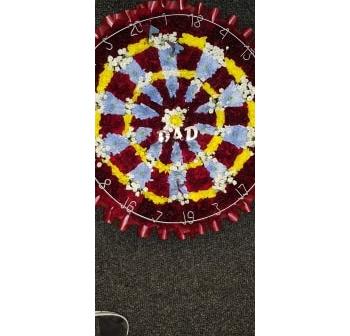 This particular dart board was designed in claret and blue but the traditional colours can be applied.