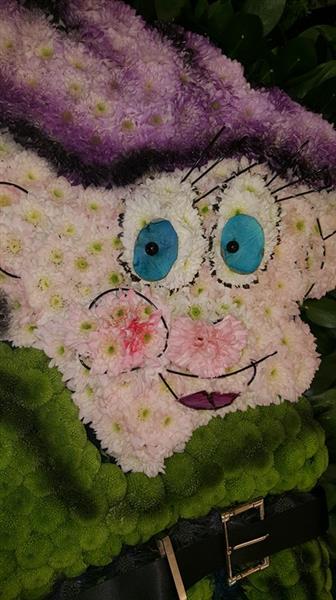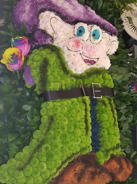 Made on a 3ft (92cm) x 2ft (61cm) design board we can design a 2D tribute depicting most cartoon characters. The picture shows one of the seven dwarfs.