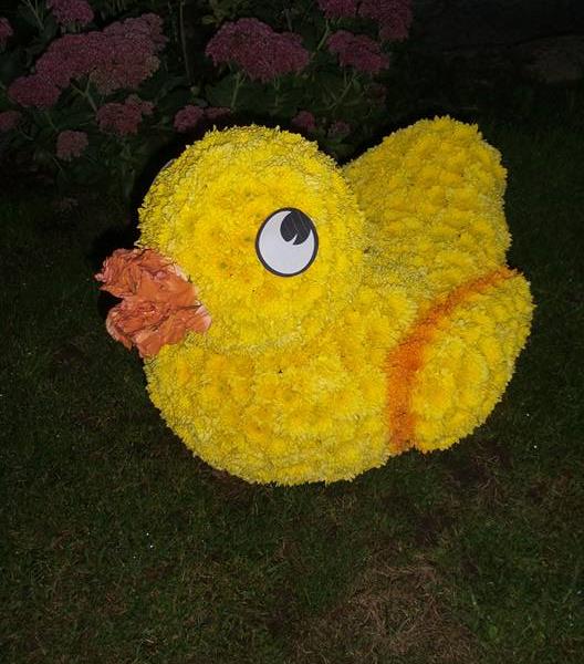 Our rubber duckie, as seen in the picture is approx 24 inches (60cm) in length and 16 inches (40 cm) tall to the top of his head. In the traditonal bright yellow colour with orange beak. Smaller sizes are available upon request