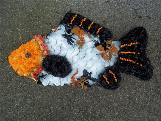 Fish tribute, the pictures shows a design made to look similar to a Koi Carp but we can tailor the design to suit your choice.