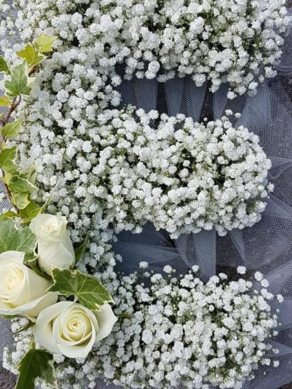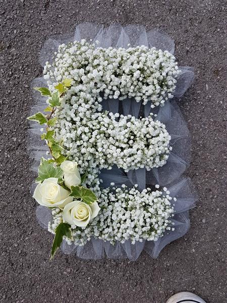 Traditional based letters but using delicate, large headed Gypsophylia for a very delicate look. We advise you keep the base white and add colour in the small spray we add to each letter.
