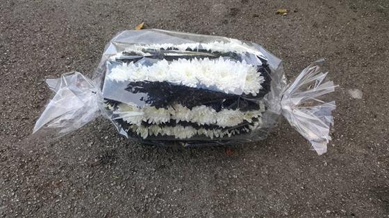 Humbug sweet, approx 8 inches long ( 20cm) with out cellophane wrapping, sits on a small base off the floor. Traditional black and white stripes. Can be made larger, give us a call 0121 366 7226