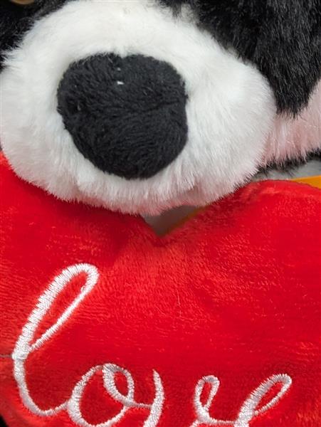 This cuddly panda teddy bear holding a bright red heart is the perfect symbol of love and affection. Designed with super-soft plush fabric and a cute panda face, this teddy makes an irresistible gift for someone special.