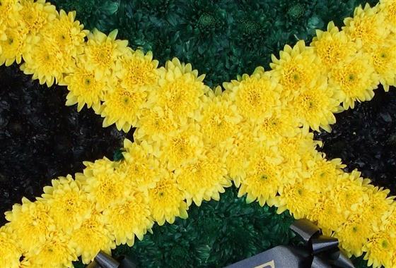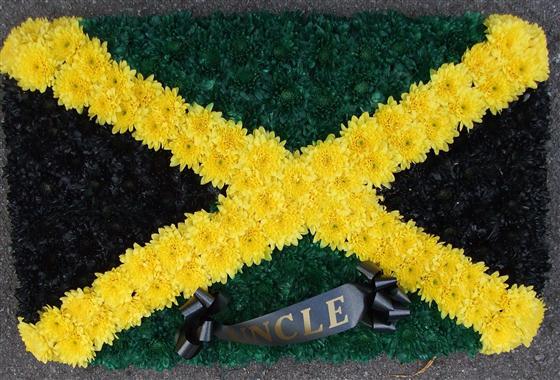 The Jamaican flag is available in three sizes, we can add a ribbon sash with a name on if you wish. Please give us a call 0121 366 7226