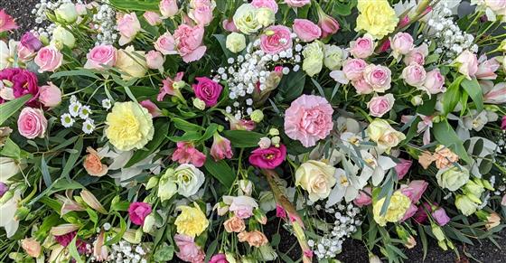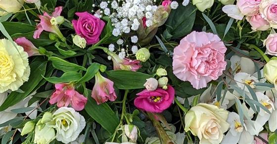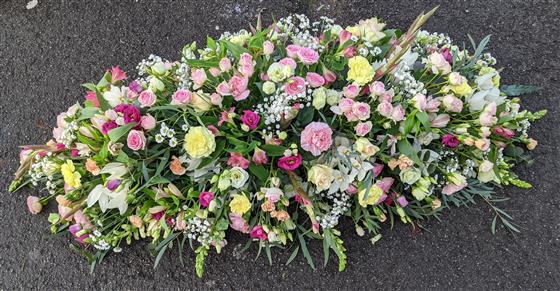 Seasonal flowers and foliage in pastel shades, will vary according to seasons