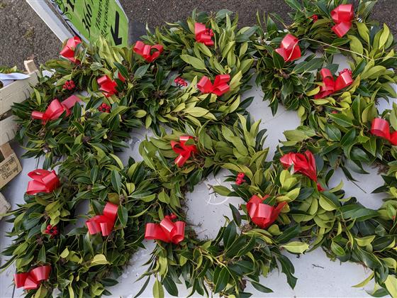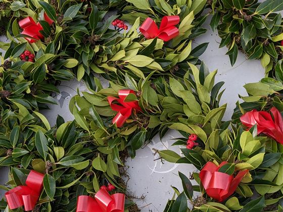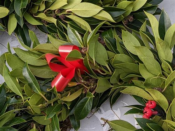 Plain Holly Wreath, moss base with red bows available from 2nd December 2023
