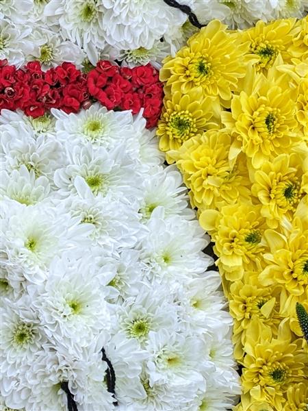 This design is made on a design base approx 27 inches(69 cm)x 19 inches(49cm) background colour can be changed and the spray on the side. Sash is optional. Other characters are available please call 0121 366 7226 to discuss your requirements